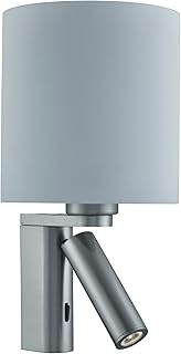 Searchlight Verstellbare Wandleuchte, 1 Zylinder, LED-Arm, Leseleuchte, silberfarben, satiniert, Weiß, Glasschirm, 40 W, silberfarben