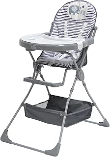 Badabulle Kompakter Hochstuhl - mitwachsend, 5-fach höhenverstellbar, einfach zusammenzuklappen, mit großem Esstisch, grau