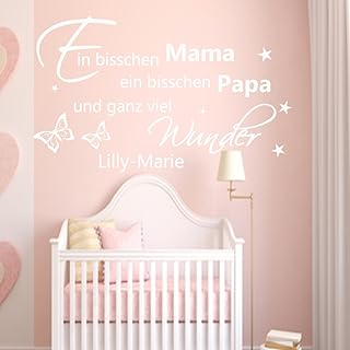 WANDTATTOO AA091 Wandaufkleber Ein bisschen Mama ein bisschen Papa und ganz viel Wunder personalisiert Wunschnamen Geschenk zur Geburt Taufe Baby