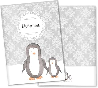Mutterpasshülle für den deutschen Mutterpass | 3-teilig Black & White | Hülle für deinen Mutterpass | Hochwertige Schutzhülle für Mutterpass | Geschenk für Schwangere (Deutschland Mutterpass, Pinguin)