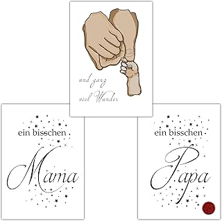 S&N® Babyzimmer Deko-Poster Set in DIN A4 | ein bisschen Mama - ein bisschen Papa und ganz viel Wunder | Wanddeko Baby- Kinderzimmer Geburtsposter als Geschenk-Idee - ohne Rahmen