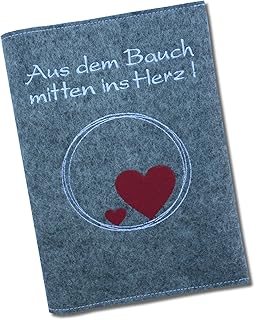 Emadele Mutterpasshülle 'Aus dem Bauch mitten ins Herz' aus Filz Handmade Anthrazit. Mutterpass Schutzhülle Organizer Fächer für Ultraschallbilder, Impfpass-Hülle A5 Format für deutschen Mutterpass