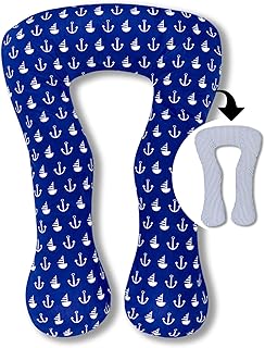 Amilian® Schwangerschaftskissen Lagerungskissen Relaxkissen ink.Bezug universell groß Anker groß/Streifenmuster blau TYP A