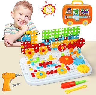 LEADSTAR Mosaik Steckspiel Montessori Spielzeug mit Bohrmaschine Pädagogisch Kreativ 3D Puzzle Spiel Bausteine Werkzeugkoffer Geschenk für Kinder Jungen Mädchen ab 3 4 5 6 7 8 9 10 Jahre, 276 Stück