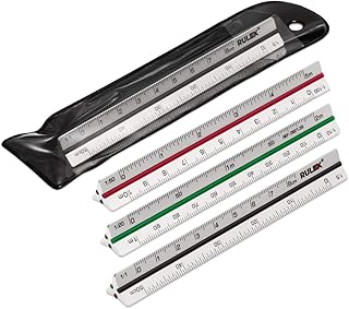 Rulex 150mm 15cm Mini Silber Metall Dreieck Lineal mit farbigen Streifen und Skalen: Seite 1 - 1:1 & 1:5, Seite 2 - 1:20 & 1:10, Seite 3 - 1:50 & 1:100