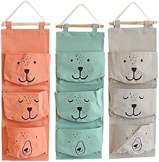 Inwagui Hängeorganizer Cartoon Tier Hängenden Taschen Wand Tür Hängende Aufbewahrungstasche Kinderzimmer Utensilientasche mit 3 Tasche - Bär Grau
