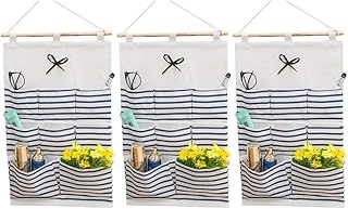 Torey 19X59CM Hängende Aufbewahrungstasche Wand Tür Organizer Utensilientasche mit 3 Taschen Hängeorganizer Tasche Leinen Tasche Organizer für Kinderzimmer Badezimmer Schlafzimmer Bür