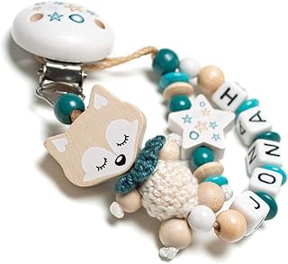 Schnullerkette mit Namen - Fuchs, Reh, Bär für Mädchen und Jungen (natur, Fuchs, Stern)
