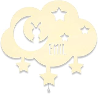 Nachtlicht Babylampe Kinderlampe Nachtlampe Wolke, Mond & Sterne Kinderzimmer-Lampe/Tauf-Geschenk oder zur Geburt/Personalisiert mit Wunschname für Mädchen/Jungen Schlummerlicht [Energieklasse A++]