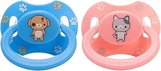 LittleForBig Großer Saugerschild Schnuller der Generation II in Erwachsenengröße Gedruckte Set-Blauer Welpe & Rosa Kätzchen