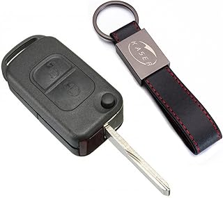 Schlüssel Gehäuse Fernbedienung für Mercedes 2 Tasten Autoschlüssel Funkschlüssel Classe A C E S CL ME004 mit Leder Schlüsselanhänger KASER