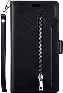 Saceebe kompatibel mit Galaxy A10 Hülle Leder Flip Case Brieftasche Glitzer Ledertasche Handyhülle Ledertasche mit Reißverschluss[9 Kartenfächer] [Reißverschluss] kratzfest Schutzhülle,Schwarz