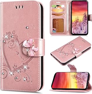 Saceebe kompatibel mit Huawei Honor V20/View 20 Hülle Leder Flip Case Datura Blumen geprägte Leder Rhinestonegurt Lanyard Handyhülle Schutz Ledertasche Handytasche kratzfest stoßfest Schutzhülle,rot
