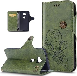 Kompatibel mit Schutzhülle Huawei Honor 5X Hülle Handyhülle Leder Hülle,Retro Leder Schnalle 3D Relief Prägung Rosen Blumen PU Lederhülle Flip Hülle Cover Ständer Wallet Tasche Case Schutzhülle,Grün