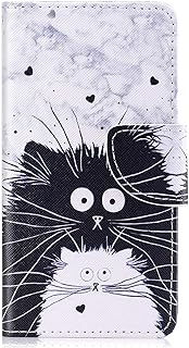 kompatibel mit Huawei Honor 7X Hülle,Huawei Honor 7X Lederhülle,Huawei Honor 7X Tasche Leder Flip Case Brieftasche Etui Schutzhülle Flip Hülle Handytasche für Huawei Honor 7X,(Schwarz Weiß Katze)