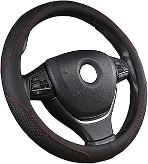 D-Typ Universal Auto Lenkradhülle Lenkrad Abdeckung Lenkradbezug aus echtes Leder 38CM / 15'' Anti Rutsch Lenkradabdeckung Lenkradschoner - Schwarz & Rot