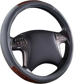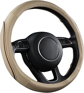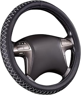 Horse Kingdom Auto Lenkradhülle Lenkrad Abdeckung Heavy Duty Lenkradbezug aus echtes Leder 38CM / 15'' Anti Rutsch Lenkradabdeckung Lenkradschoner
