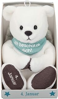 Depesche 8139.004 - Schutzengel Bär aus Plüsch, ca. 9 cm, mit Datum 04. Januar, Geschenk für Geburtstag, Jahrestag oder Hochzeitstag