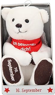 Depesche 8139.260 - Schutzengel Bär aus Plüsch, ca. 9 cm, mit Datum 16. September, Geschenk für Geburtstag, Jahrestag oder Hochzeitstag