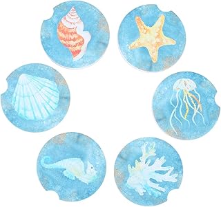 FOGAWA 6 Stück Auto Getränkehalter Untersetzer Ocean Car Untersetzer saugfähige Keramik mit einer Fingerkerbe für einfaches Entfernen des Auto Getränkehalter Untersetzer