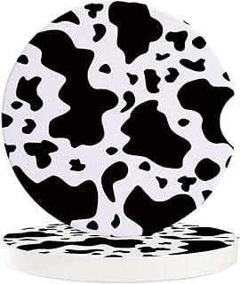 Heteri Auto-Untersetzer, saugfähige Keramik-Auto-Untersetzer, Getränkehalter, mit Fingerkerbe für einfaches Entfernen (Kuh), 2 Stück