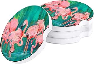 Auto-Untersetzer mit pinkem Flamingo, 4 Stück, Getränkehalter, perfekt zum Dekorieren mit einer Fingerkerbe für einfaches Entfernen