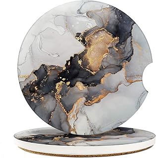 Saugfähige Auto-Untersetzer, 2 Stück für Damen/Herren, modische Luxus-Auto-Untersetzer für Getränke, Keramikstein, Auto-Getränkehalter mit einer Fingerkerbe, Farbverlauf vergoldeter Marmor