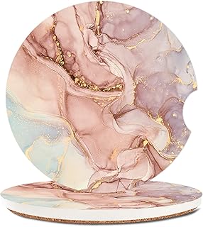 Lahome Auto-Untersetzer, 2 Stück, klein, 6,5 cm, saugfähiger Stein, Becherhalter, perfektes Autozubehör mit Keramikstein und Korksockel für Fahrzeuge kleinen Halterungen (rosa Marmor, 2)