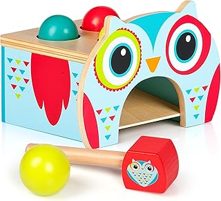 Leomark Hammerbank aus Holz - Eule - Klopfbank für Kinder, Baby Hammerspiel, Hämmer Mehrfarben, pädagogisches - sensorisches Spielzeug