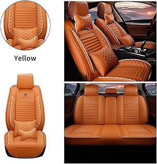 Muchkey 5-Sitze Auto Sitzbezüge Leder Set für Dacia Sandero Stepway Autositzbezüge Set mit Kopfstütze Nackenkissen & Rückenkissen Autositze Zubehör Stil A Cayenne gelb