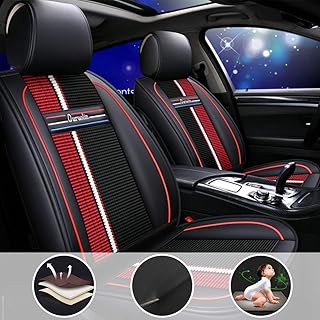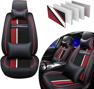 Muchkey Leder Auto Sitzbezüge für Chevrolet Orlando Captiva Volt Sonic Impala Equinox 5 Sitze Autositzbezüge mit Kopfstütze Nackenkissen & Rückenkissen Autositze Farbe Schwarz Rot