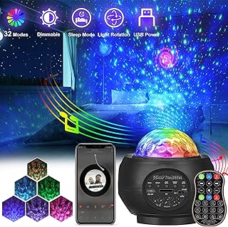Sternenhimmel Projektor, LED Projektor Sternenlicht, USB Fernbedienung Nachtlicht, Rotierende Farbwechsel Wasserwellen Projektionslampe, Sterne Musik Lampe mit Timer, für Kinder [Energieklasse A+]