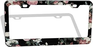 Nummernschild Rahmen Vintage Blumen Edelstahl, Auto Tag, Nummernschild Rahmen für Frauen, License Plate Cover für US Fahrzeuge Standard, Vintage Pink And Cream Dark Floral