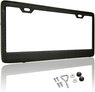 Kennzeichenrahmen aus 100 % Karbonfaser, 2 Löcher, schwarz, schwarz, Nummernschild-Rahmen, schlankes Design mit Chrom-Schraubkappen, Werkzeug-Set für USA, Canda und Mexiko (1 Stück)