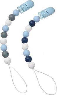 Schnullerkette junge und mädchen Dummy Clips Schnuller Halter für Baby Silikon Beißring Perlen 2 Stück(Blau)