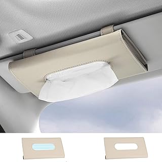 UTSAUTO Auto Taschentuchhalter, Sonnenblende Serviettenhalter, Auto Tissue Box, PU Leder Rücksitz Taschentuchhalter für Auto Fahrzeug Visier Taschentuchhalter Beige