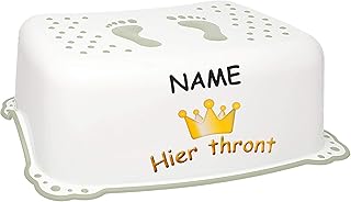 alles-meine.de GmbH Anti RUTSCH - Trittschemel / Tritthocker / Kindersitz - weiß - grau _ Hier thront _ inkl. Name - Bieco - Tritt - Kinderschemel & Kindertritt - bis 100 kg / Fu..