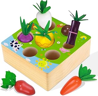 Toyssa Holzspielzeug für Baby Kinder 12 Monate Karottenernte Lernspielzeug Montessori Motorik Spielzeug Sortierspiel Holz Geburtstag Weihnachten Geschenk für Jungen Mädchen 1 2 3 Jahr Alt